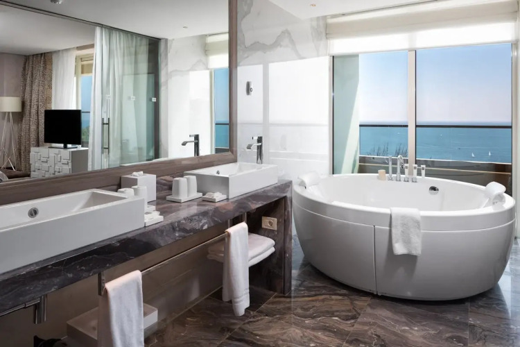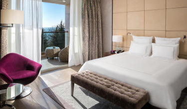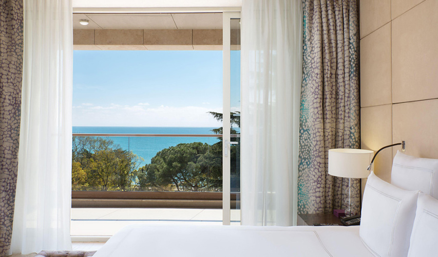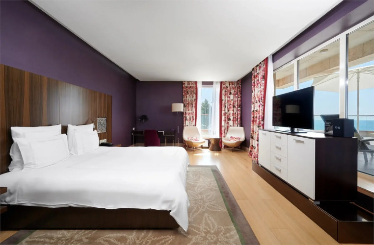 Двухместный люкс с гостиной Signature с видом на море двуспальная кровать