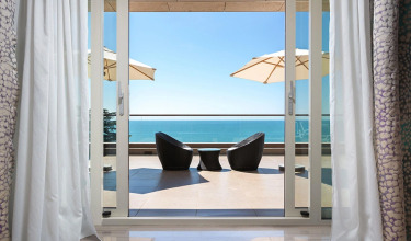 Двухместный люкс с террасой с гостиной с видом на море двуспальная кровать